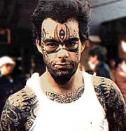Mike Wilson (aka The Illustrated Man) may be known to many of you due to his involvement in the Coney Island Side Show, and the New York Tattoo Society, as well as appearances in the book Modern Primitives, and movies and music videos. 90% of his body was tattooed. In 1986, he moved to New York from San Francisco because he couldn't find an artist who would tattoo his face. He died July 29th, 1996 from a head injury caused by a fall after a diabetic seizure. Some say he committed suicide, drinking himself to death.