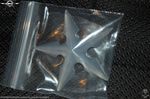 Implant materials are usually Teflon(PTFE) or Silicone. Any biocompatible material can, in theory, be used for implants, including metals (implant-grade stainless steels and related alloys; titanium and titanium alloys; and even high-karat gold), along with various synthetic materials (nylons, silicones, teflon, etc.). Organic materials, as well as many polymers that break down under the hard conditions of the body, should be absolutely avoided. Doctors have access to many advanced materials, offering a multitude of options, but the few I've listed above are what non-medical practioners are limited to. This is, in part, because many medical-grade implants are restricted to sale and use by doctors only, but also because there is no reasonable way for a non-medical practitioner to achieve sufficient training to safely use these materials.