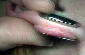 When a piercing is stretched too quickly (a rate which is different for everyone), the skin tunnel (fistula) can be forced out the back of the piercing by the pressure. The result is an unsightly "lip" around the edge. If stretching continues, this lip can grow dramatically. Two solutions are generally prescribed (although they don't always work):