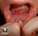 Inner lip tattoos are tattoos done on the interior of the mouth on the lower lip. They are commonly tattooed with words or phrases and even small designs. The same can also be done inside of the upper lip.
