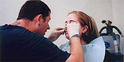 Tom at work, dermal punching a septum.