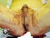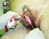 In the procedure below you can see the most common type of scrotal removal, the scrotum is shrunk by cutting off a portion of the lower end, discarding it, and suturing the remaining tissue back together.