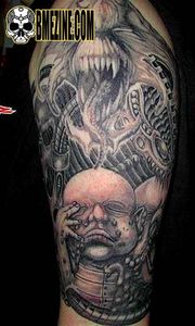 Inspired by the work of Swiss Surrealist H.R. Giger, the biomechanical style of tattooing gained prominance in the later 1980's and early 1990's.