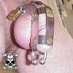 A chastity tube is a metal (or equivalent) tube (or equivalent) which fits over the penis (and sometimes the scrotum as well) in order to prevent erection and/or stimulation. It may be held in place by a piercing such as an ampallang, apadravya, frenum, or, most commonly, a Prince Albert piercing. Others can be attached via other piercings or even without a piercing. Many are lockable.