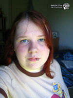 Current Body Mods- 6 tattoos; both forearms, upper left arm, 2 on collar bone, lower back. Sixteen hours of needle-time total. Left side of lip pierced, 14ga.