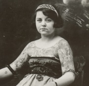 May Vandermark (Ada Mae Vandermark Patton) was a tattooed lady from Scranton, Pennsylvania. She came to New York in 1924 to work as a stenographer. It is rumored that she saw a person with a tattoo of a butterfly on their shoulder while swimming and decided she had to have one as well. She got a tattoo of a butterfly on both shoulders. She met Miss Pictoria, or Victoria James, who convinced Vandermark to become a tattooed lady. Vandermark began getting tattooed by Charles Wagner, who gave her a special price of $150 for a full body suit.[1] She started doing Coney Island shows with the name Miss Artorio and eventually worked with the Ringling show in the 1920s.