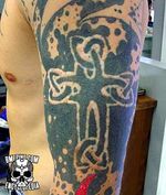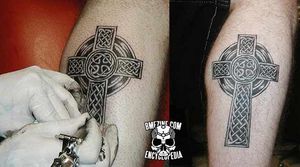 A few other implementations of Celtic crosses are shown below — the variations are almost endless, and while they are normally tattooed in place, they can also be scarred in place (as shown in the third photo).