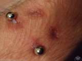 A surface piercing is a piercing where the entrance and exit holes are (usually) pierced through the same flat area of skin.