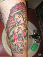 The Virgin Mary, also known as the Madonna, is the mother of Jesus who was conceived through the Immaculate Conception. She is also a popular religious tattoo motif, particularly her image as the Lady of Guadalupe.