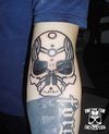 L-R: Militia skull, with wings, Shannon's head, and the logo as a tattoo