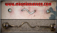 In the surface weaving style of surface piercing, a single piece of jewelry passes in and out of the skin multiple times. This can be done with flexible jewelry such as nylon or Tygon, or with specially bent surface bars, often called 'MadMax bars' after Samppa's studio in Finland, where this technique was pioneered.